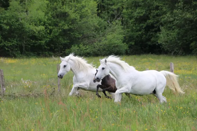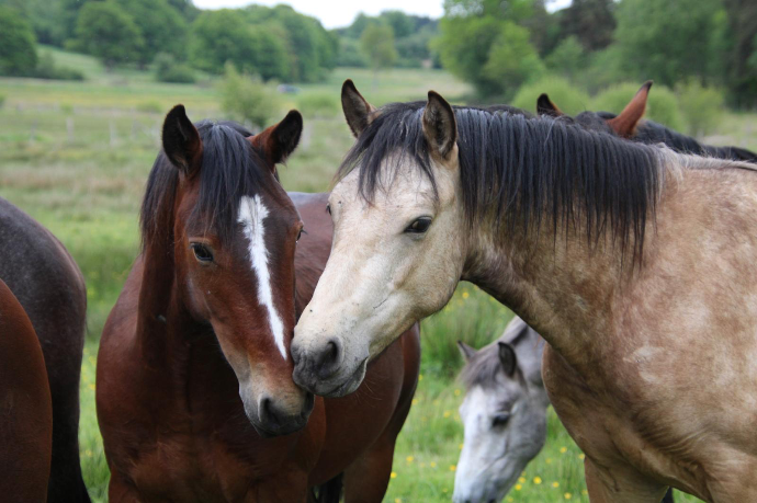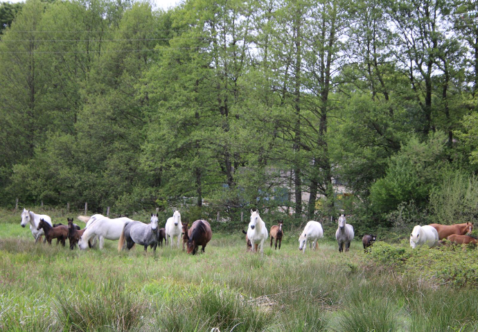 Vie en groupe dans de grands espaces, id"ale pour le bien-être des chevaux